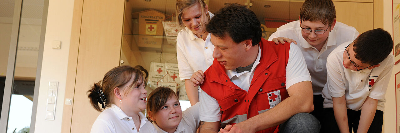Unsere Jugendlichen beim Bestaunen des Rettungswagens.